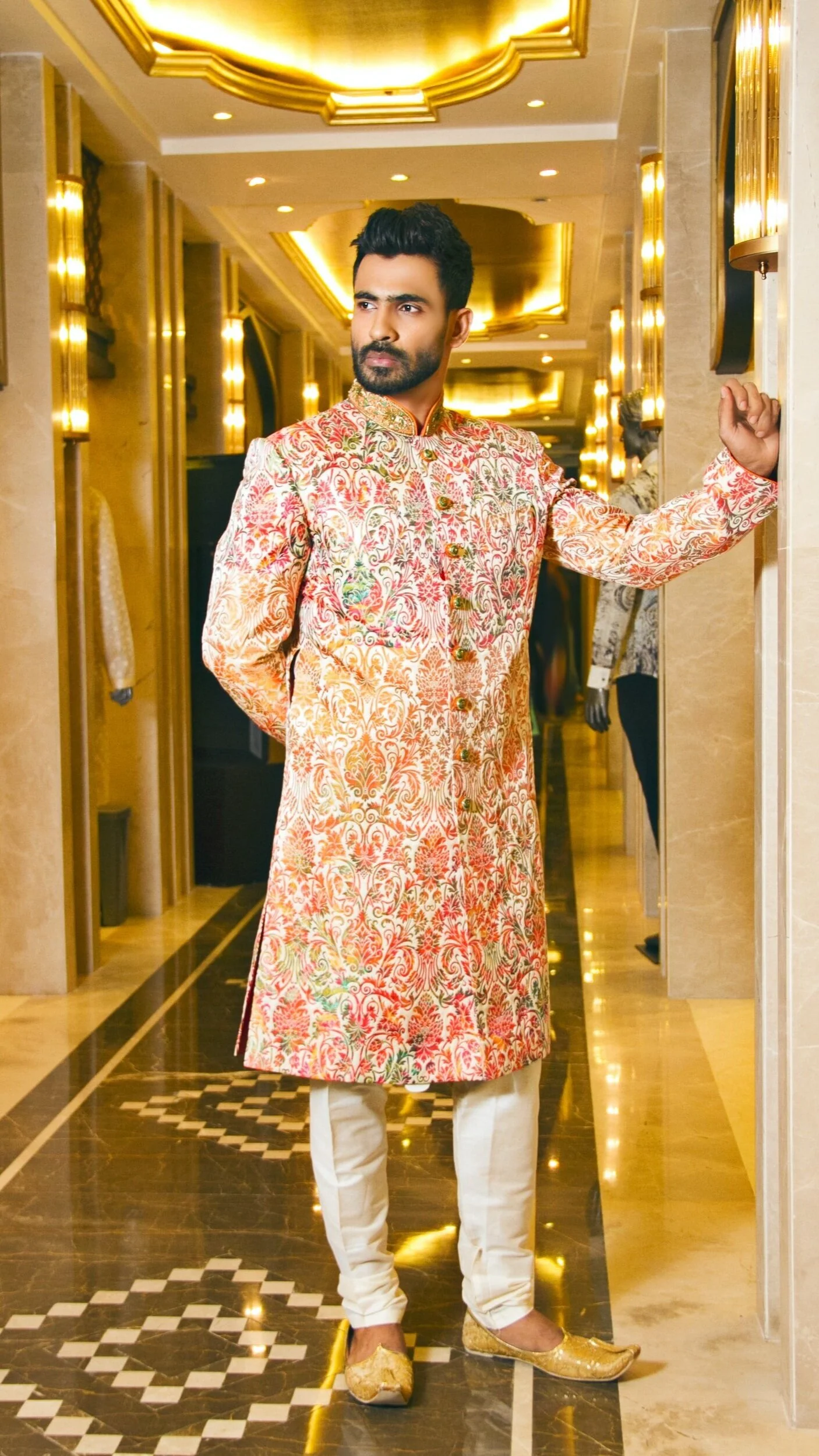 Sherwani styles consist of a jacket and pants, and can be more formal than kurta sets.